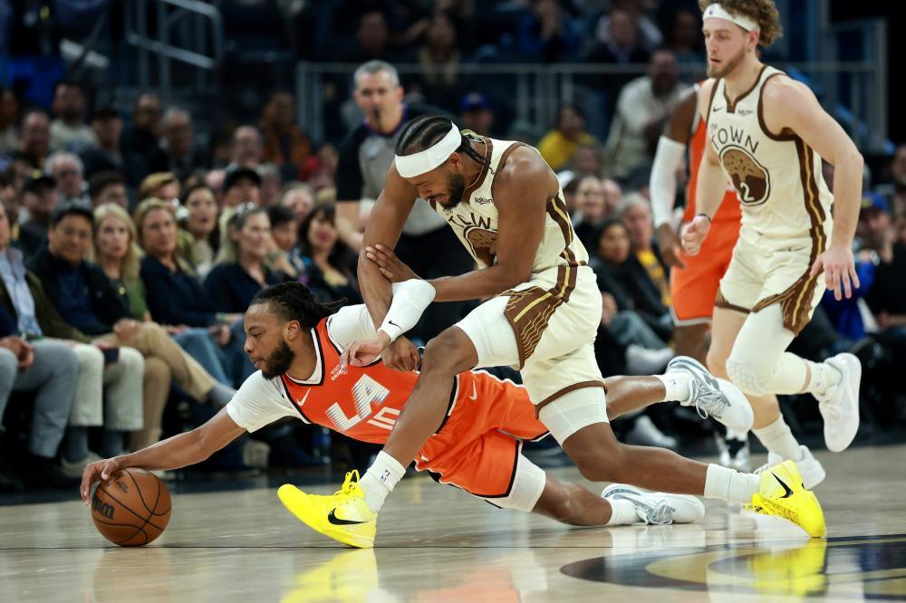 上半场,就是另外的极端。莱昂纳德和加兰的上场时间被错开,天赋平庸的加兰,又被扔到了单核带队的环境。只能说,加兰确实扛起了球星的责任,但他实在很难做出实质的贡献。他只会在勇士凶悍的夹击撕咬下,不停地失误。他只会在凶狠的一线领防下,不断三分打铁。在前赴后继的围剿下,加兰只会暴露天赋的平庸,组织能力优秀的特点发挥不出来,一个人几乎带崩快船整支球队。