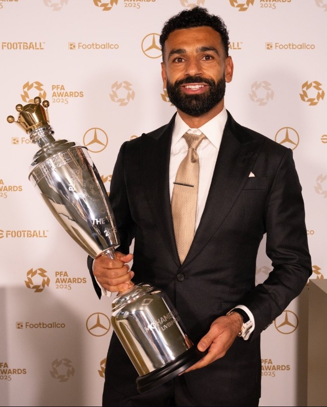 在职业足球运动员协会年度评选中,萨拉赫荣获由同行投票选出的赛季最佳球员。2024-25赛季期间,这位埃及国脚在38场联赛中贡献29粒进球和18次助攻,率领利物浦夺得英超联赛冠军。